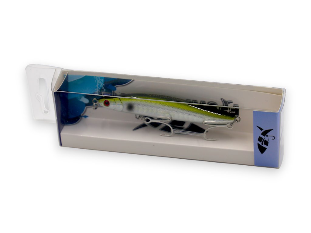 When reeling in the classic way, it oscillates briefly and quickly from side to side. You can cast it really far and if necessary, you can also let it sink to the bottom. However, it will normally run just below the surface. It is more suitable for faster movement with occasional pauses. If you add jerking with the tip of the rod to the movement, this stickbait will veer significantly to the sides. It has a narrower body at the front, which widens towards the tail. This means that it does not have much resistance when flying through the air and it flies like an arrow. Salmonids respond very well to it, as do asp, pike, perch, chub, and black bass. It is equipped with high-quality rings and treble hooks.