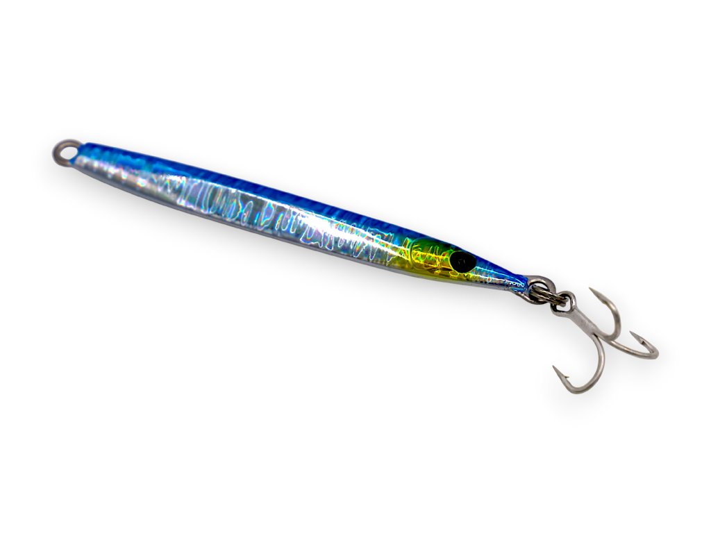It flies far when cast, has a swaying sideways drop with the entire column and a long oscillating movement when guided. A spinning pilker fitted with a high-quality treble hook that will bring you lots of success.
